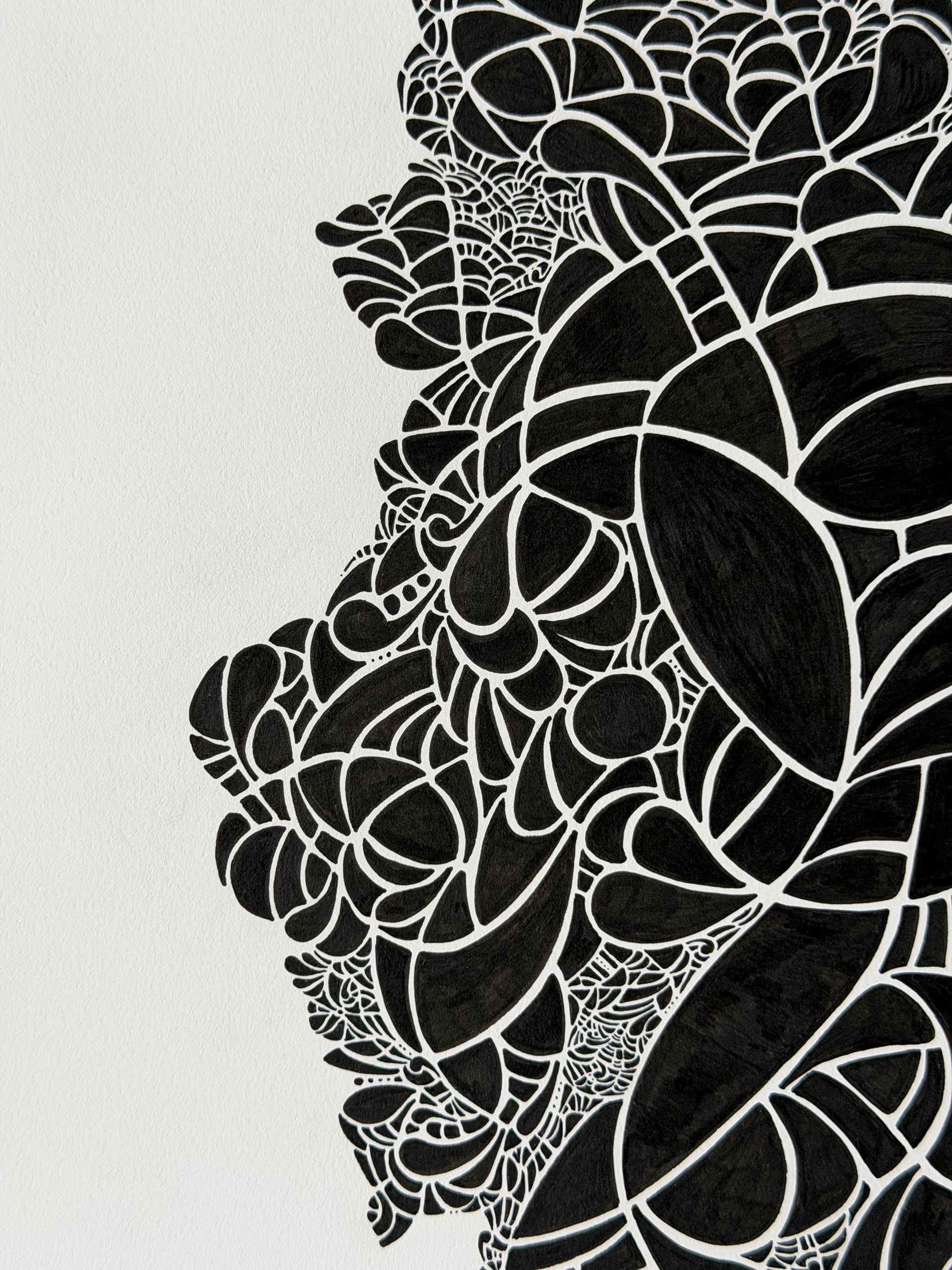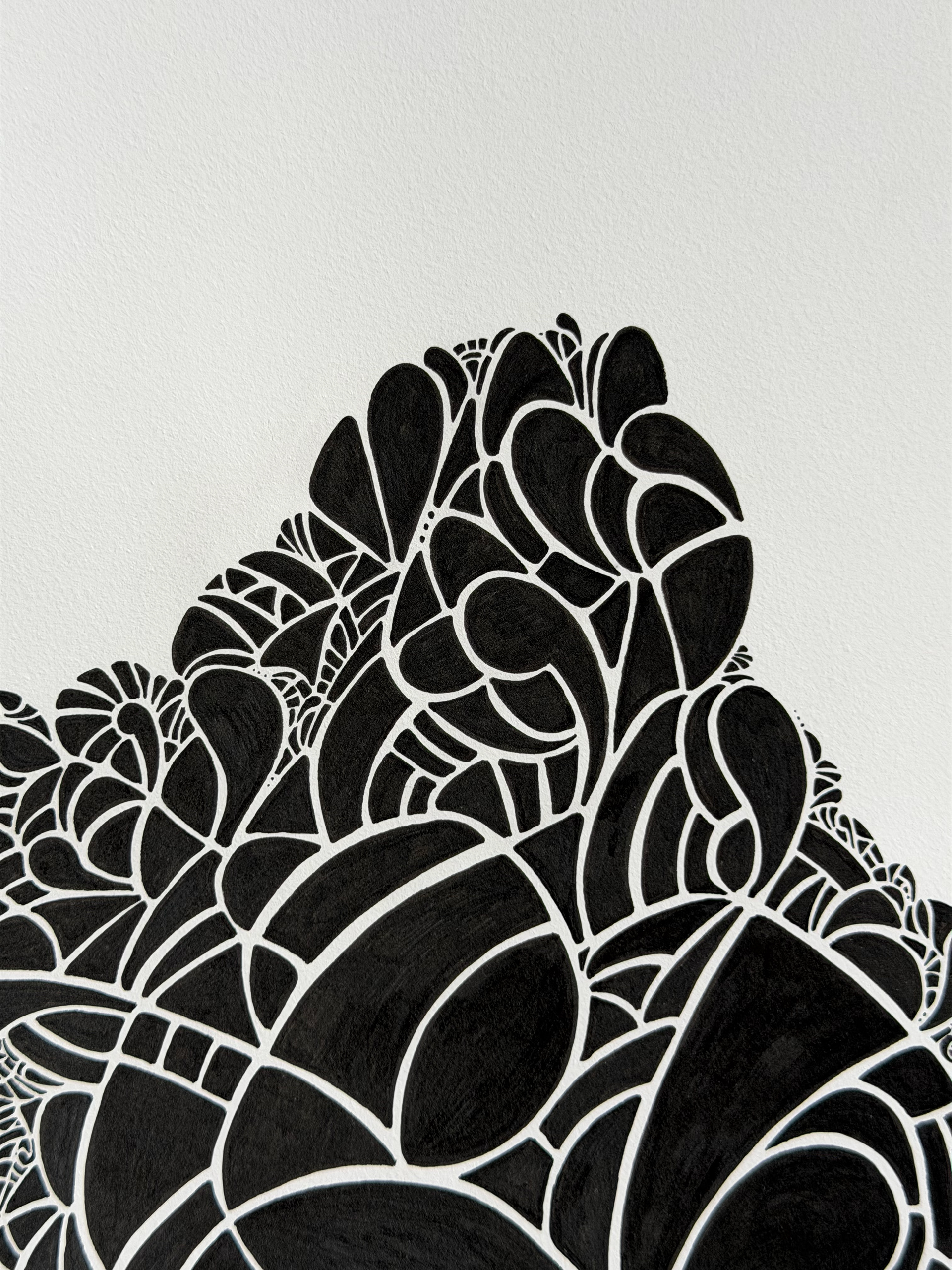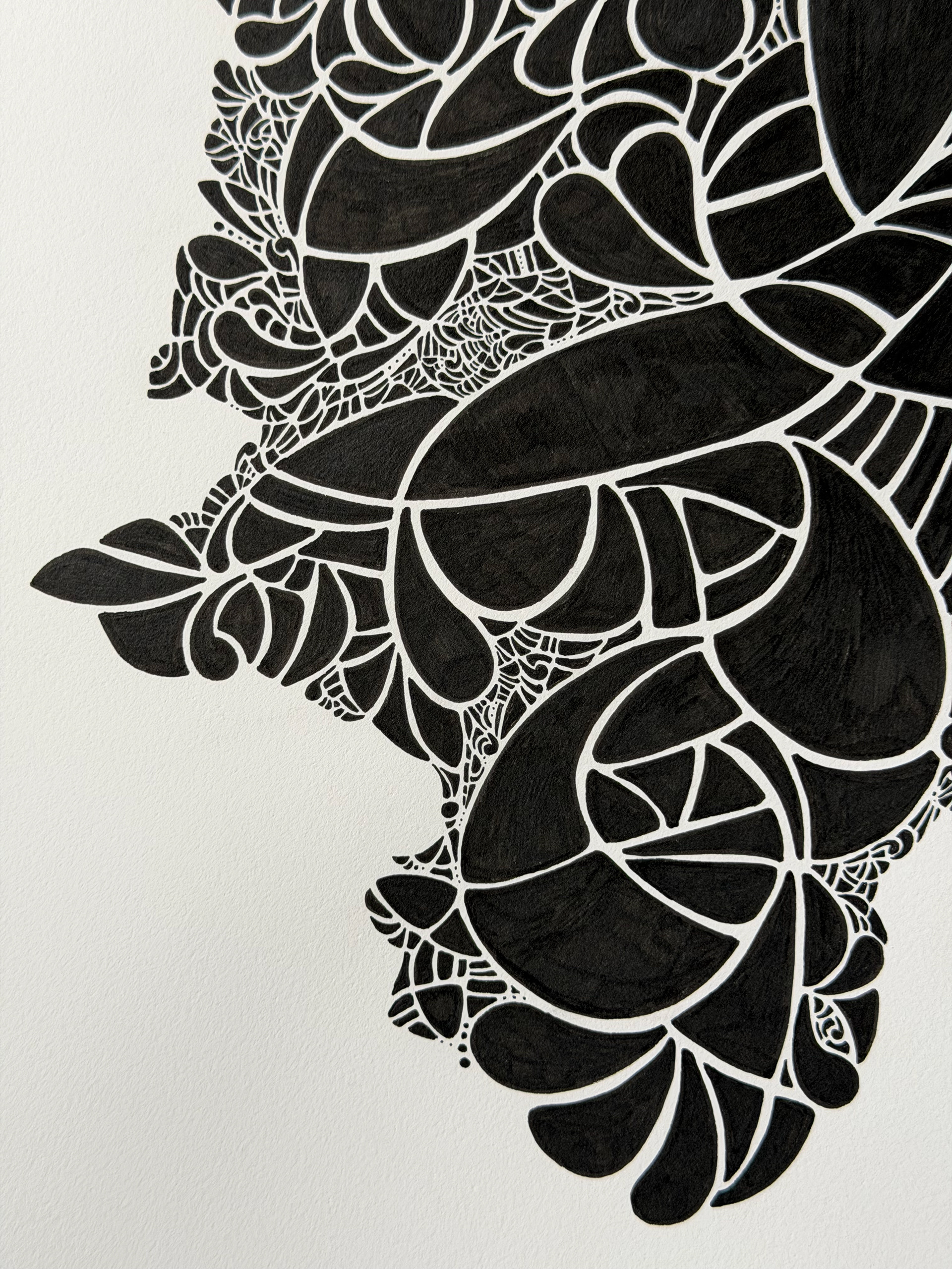 The piece invites viewers to slow down, tracing its intricate contours as a form of visual meditation, a reminder that even in shadow, new patterns of growth emerge.